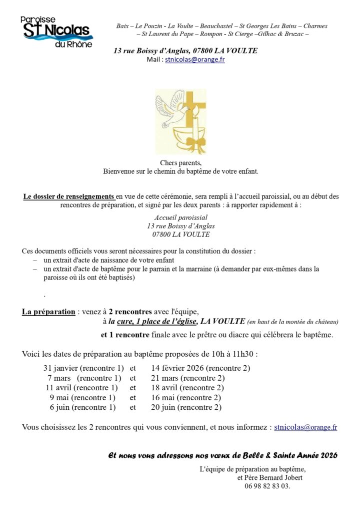 Pour vous inscrire, nous vous invitons à passer au bureau d’accueil place de l’église Saint-Vincent (près du château) à La Voulte